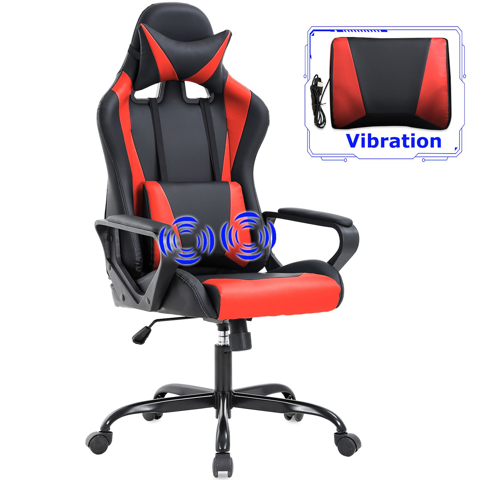 Amazon Com Kbest Massage Gaming Chair High Back Racing Pc Computer Desk Office Chair Swivel Ergonomic Executive Leather Chair With Adjustable Back Angle Armrests And Footrest Black Office Products